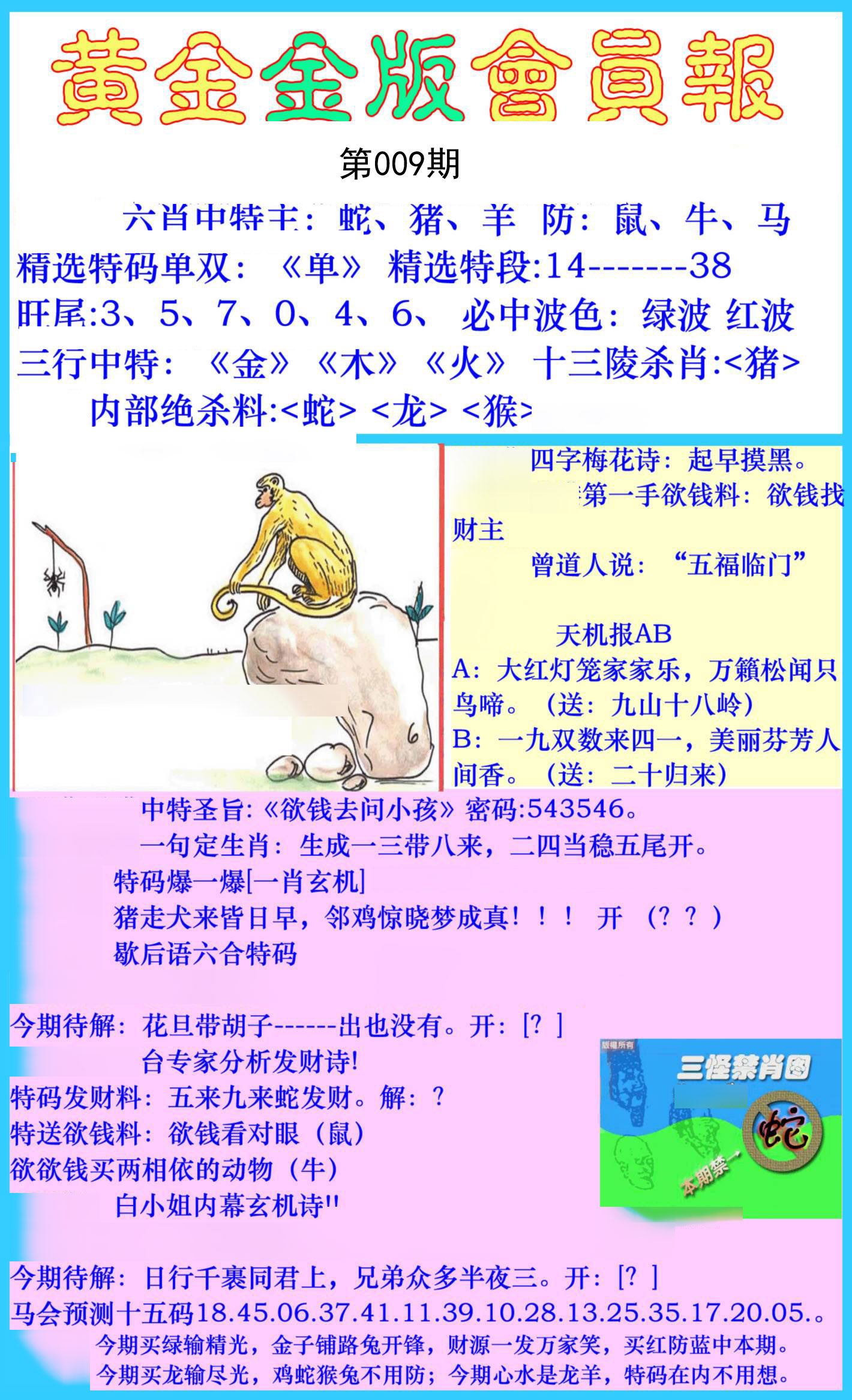 009期必中⑤肖: 鼠蛇狗羊龙 |