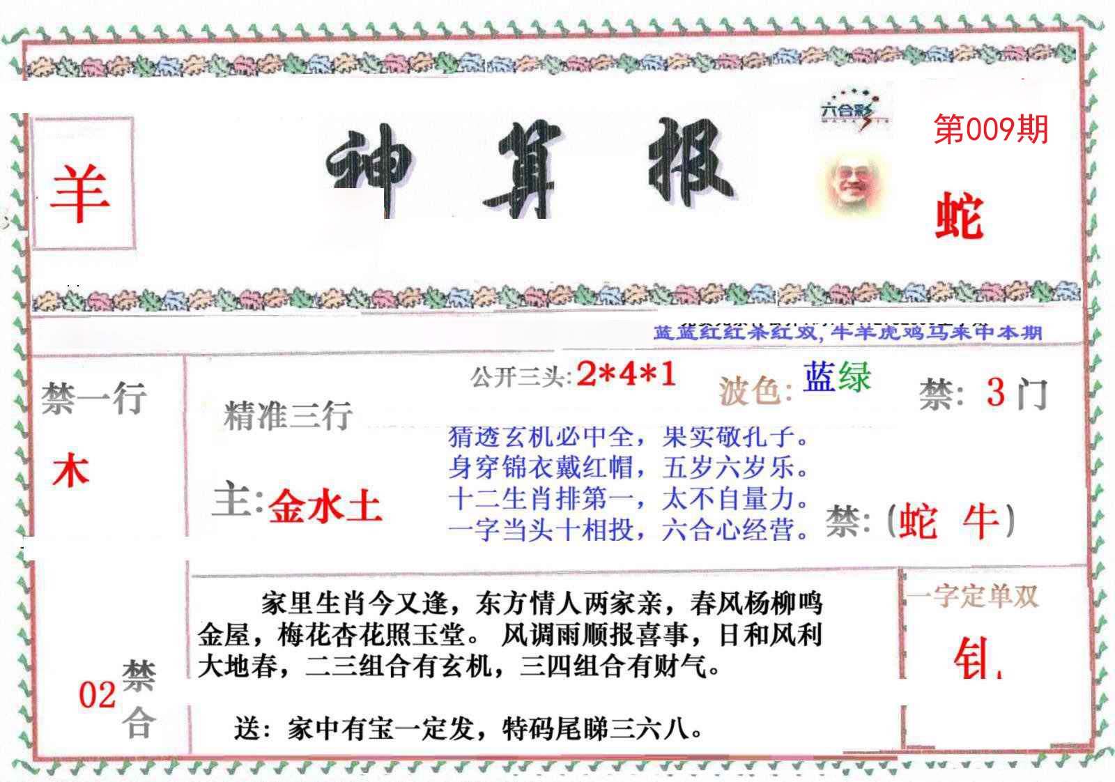 | 009期必中②肖: 鼠蛇 |