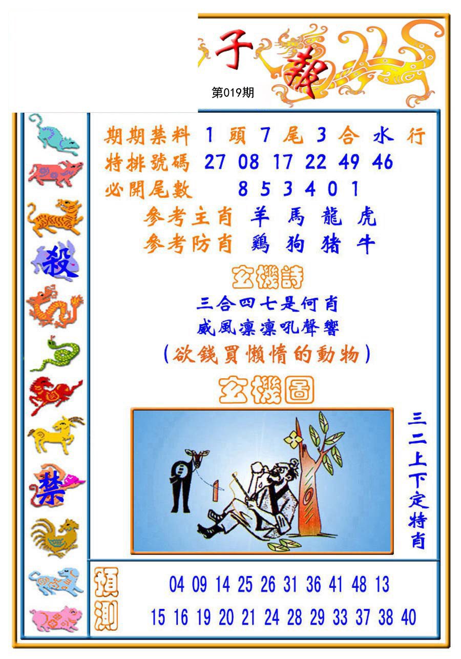 | 019期必中③肖: 鼠羊鸡 |