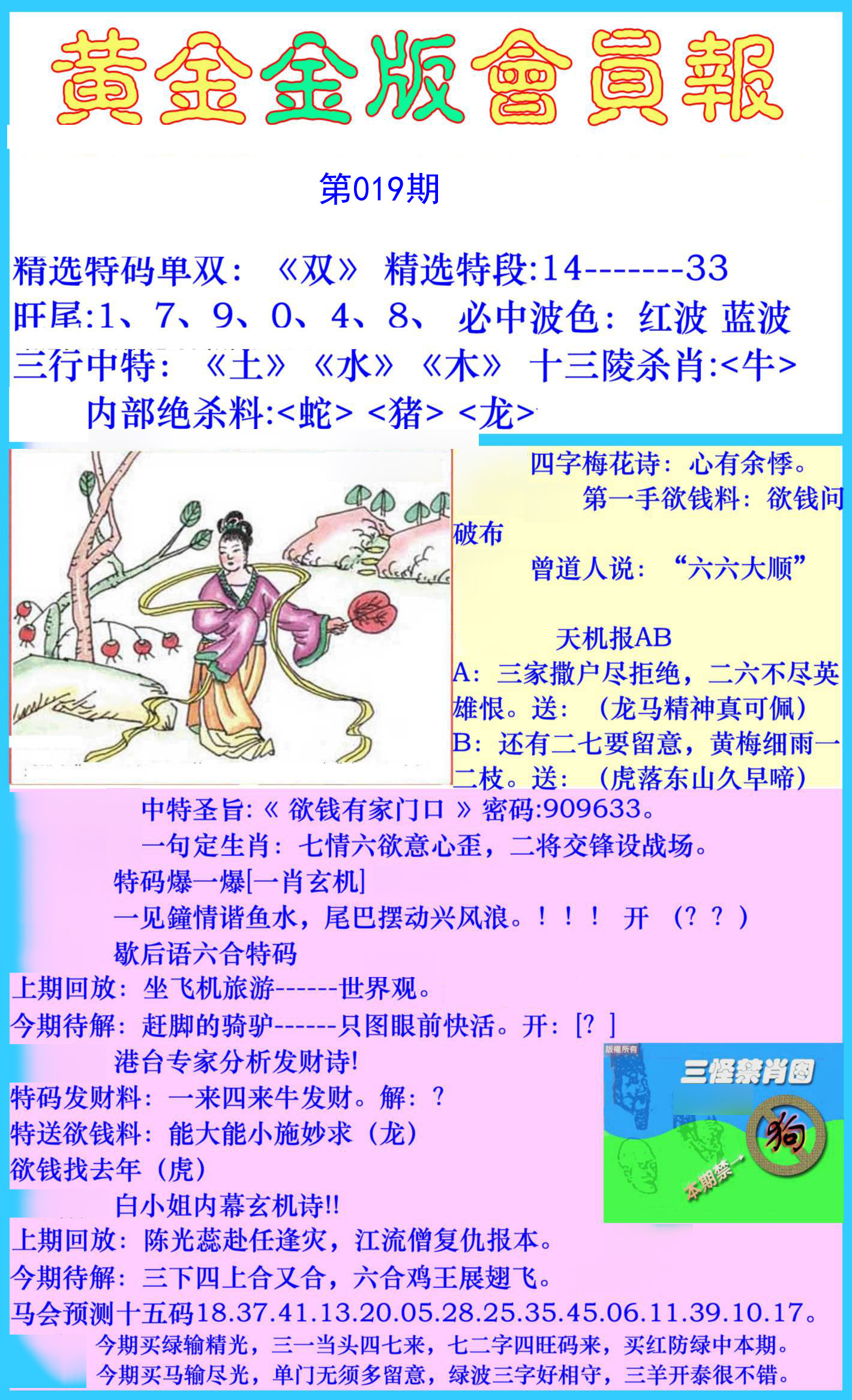 | 019期必中②肖: 鼠羊 |