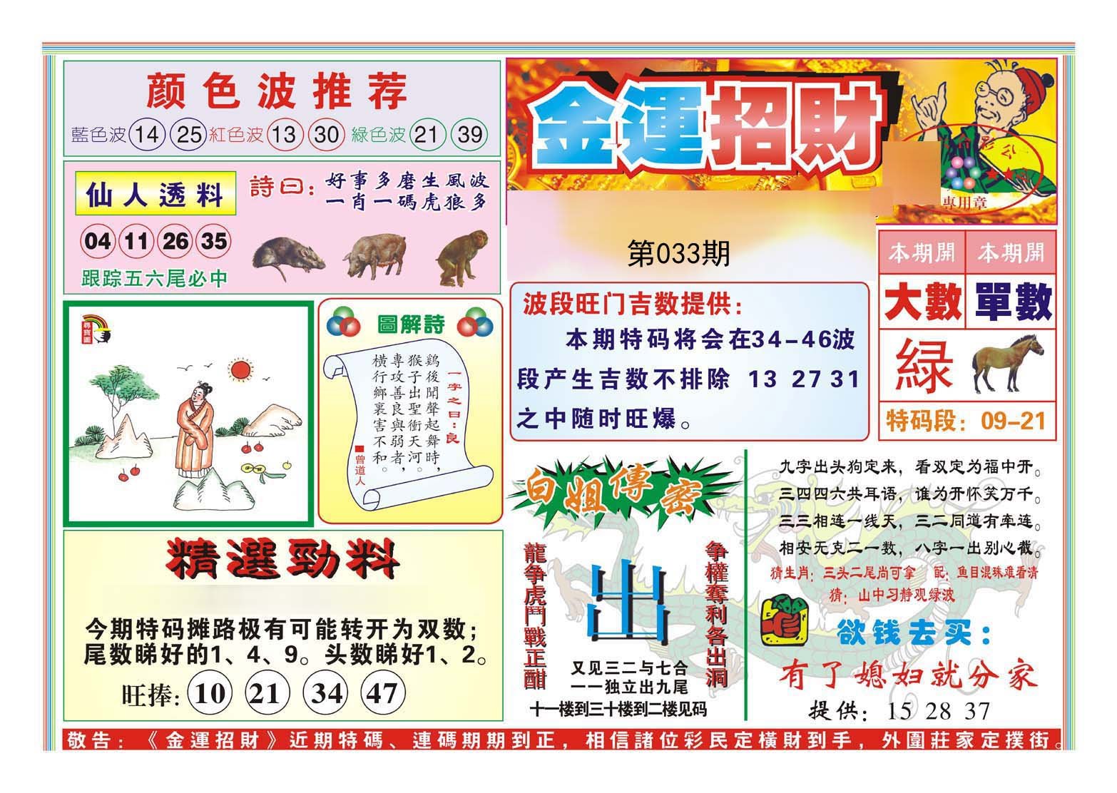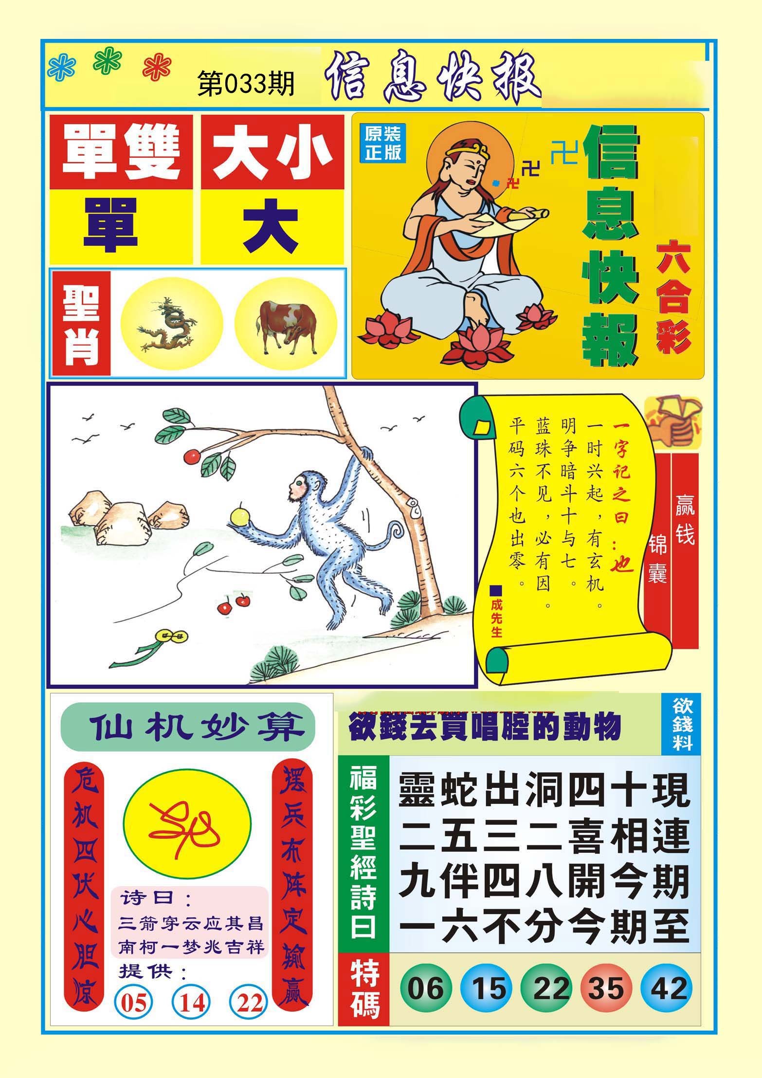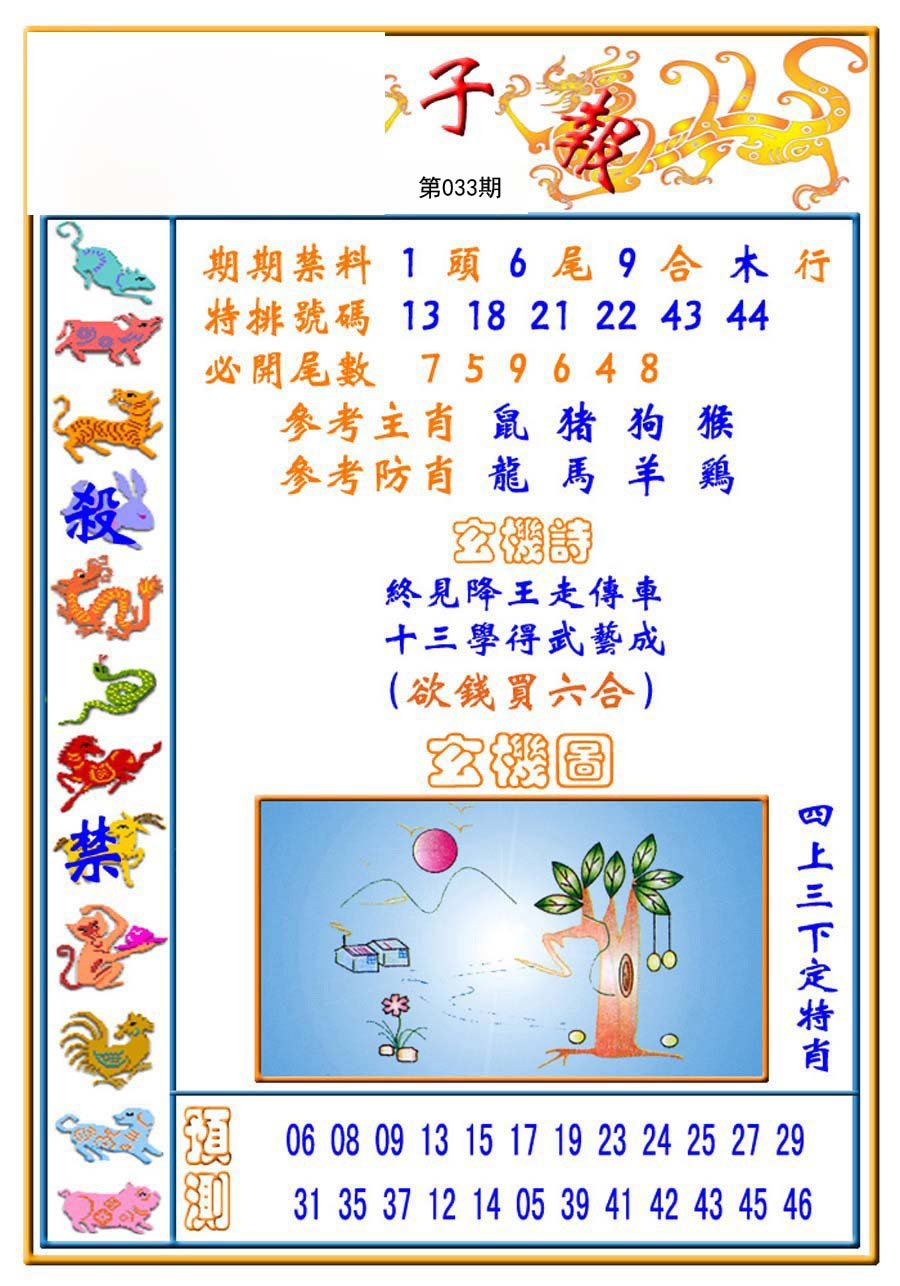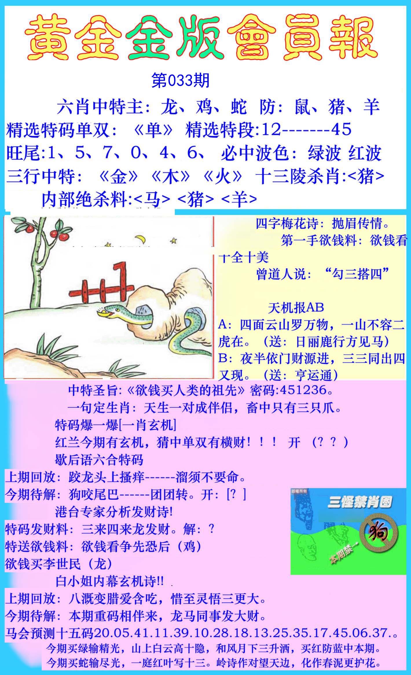 033期必中⑤肖: 牛龙马狗蛇 |