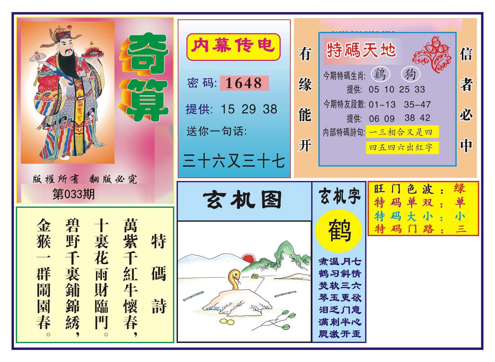 025期单双中特【单单单】猴10 |