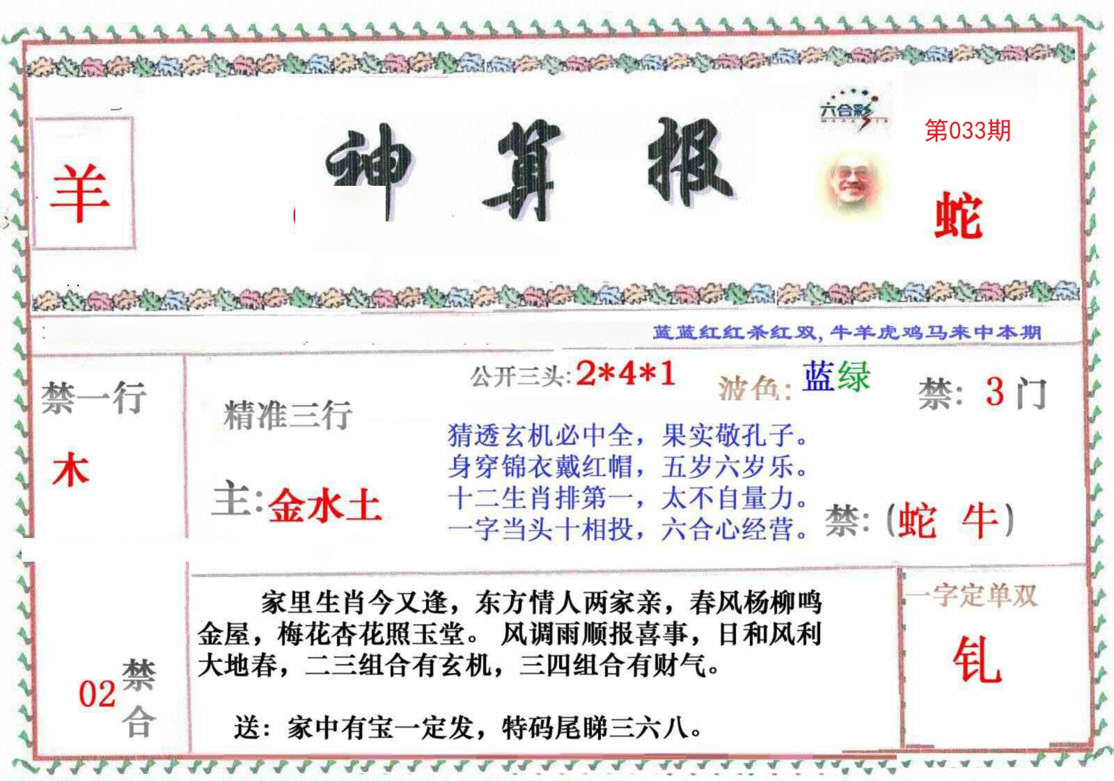 | 033期必中②肖: 牛龙 |