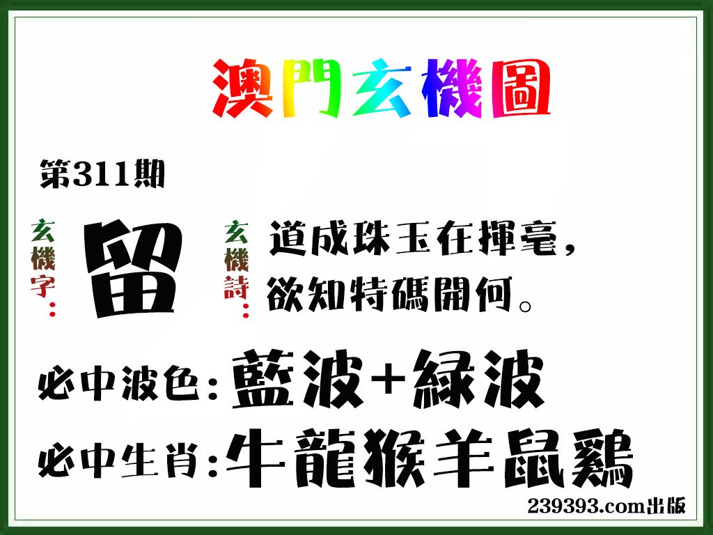 第302期绝杀半波【绿双】开虎40准 |