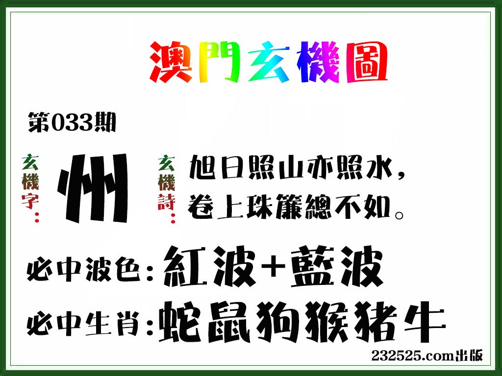 第032期绝杀半波【绿双】开猪07准 |