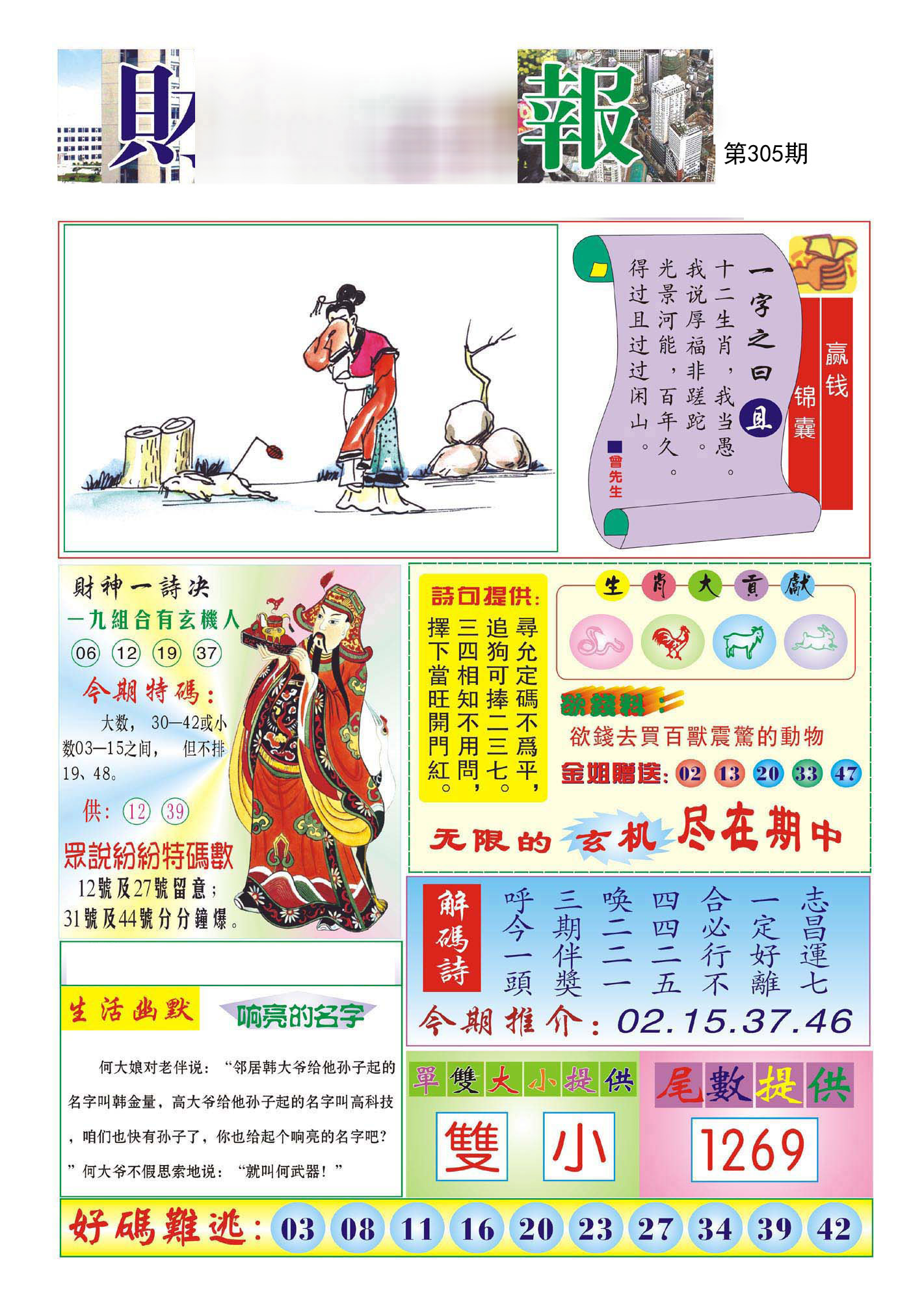305期必中⑩码: 49 37 31 14 17 22 03 40 35 32
